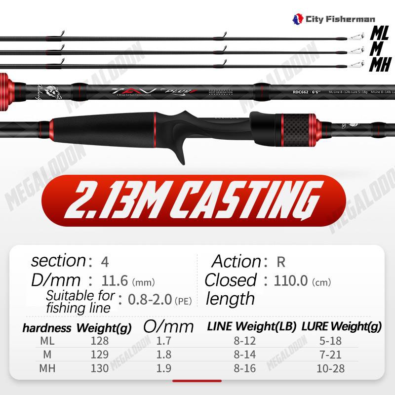 Megalodon New 3 Rod Tips M/ML/MH Carbon Fiber Fishing Rod 1.98M/2.13M/2