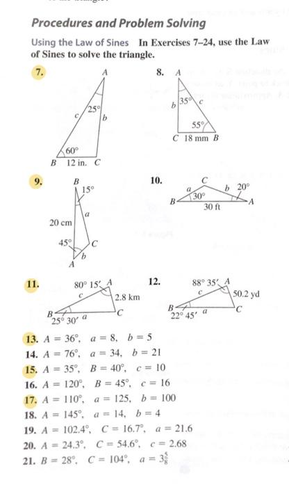 Solved Procedures And Problem Solving Using The Law Of Sines | Chegg.com