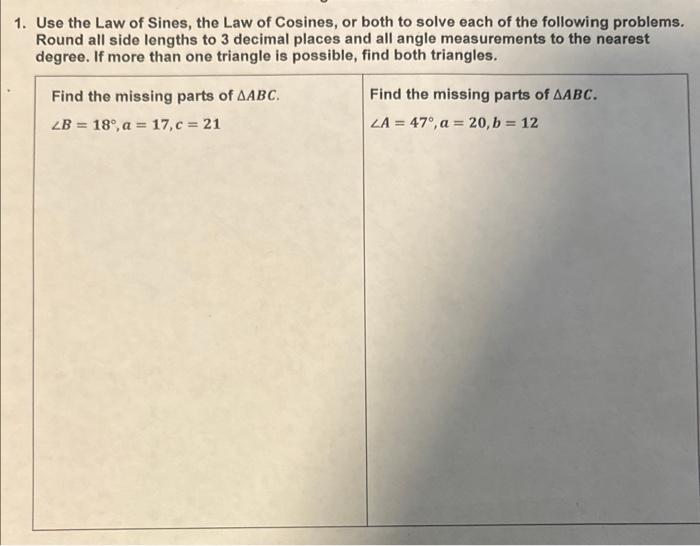 Solved Decide Whether The Law Of Sines Or The Law Of Cosines | Chegg.com